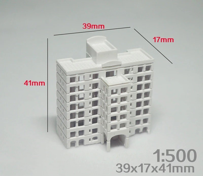 Modello dettagliato di un edificio residenziale in scala 1:500. Fornito come kit di costruzione in plastica ABS da assemblare. Descrizione completa