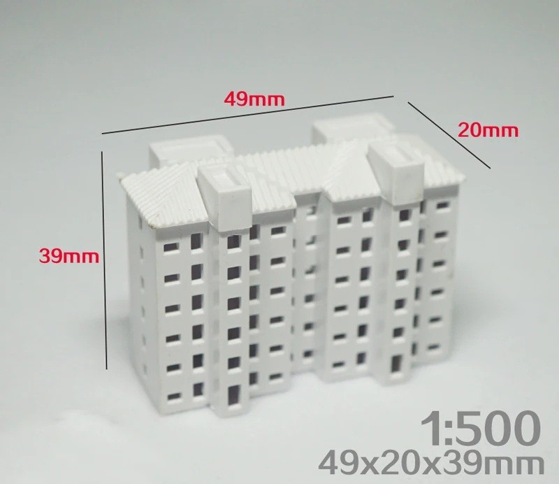 Modello dettagliato di un edificio residenziale in scala 1:500. Fornito come kit di costruzione in plastica ABS da assemblare. Descrizione completa