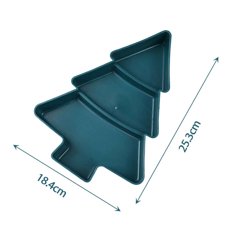 Miska a forma di albero di Natale 25,3 x 18,4 cm Ciotola di servizio a tre scomparti per frutta e noci Decorazione natalizia in plastica per la tavola