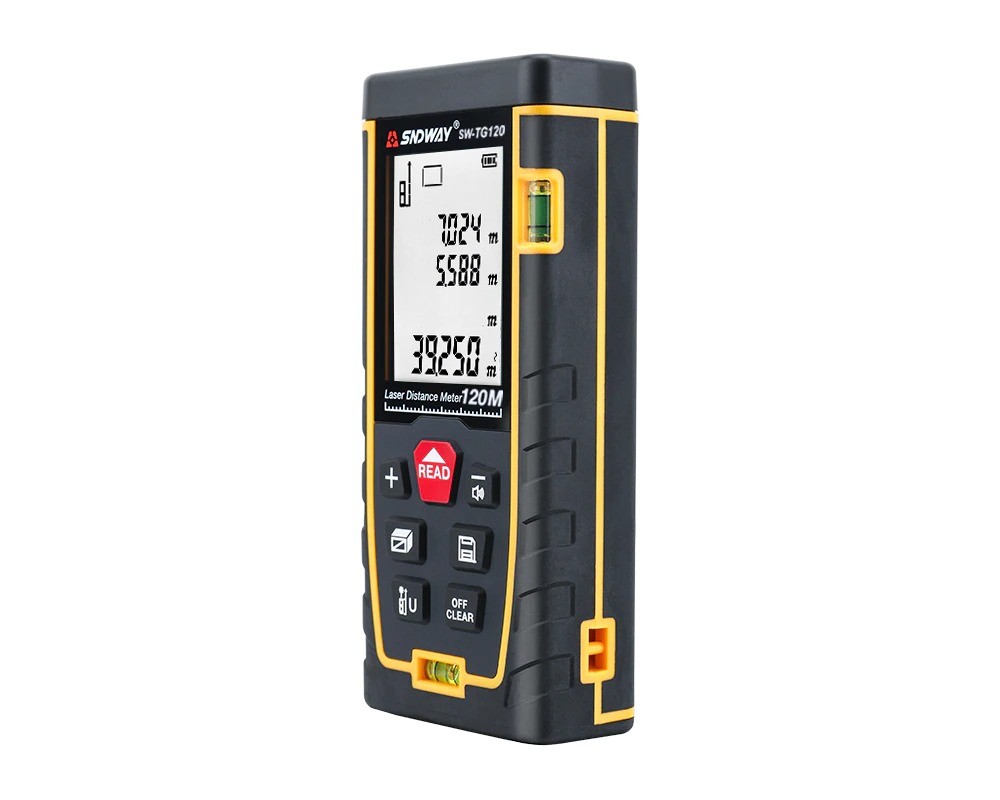 Questo misuratore laser è ideale per calcolare dimensioni fino a una distanza di 120 m. È anche capace di calcolare area e volume utilizzando le equazioni di Pitagora. Grazie alla memoria integrata, è possibile richiamare fino a 30 degli ultimi valori misurati.