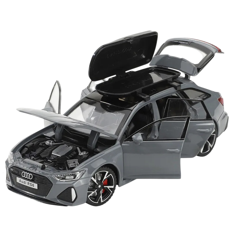 Il modello Audi RS6 offre ai bambini la possibilità di creare i propri scenari automobilistici e sviluppare creatività e fantasia. Grazie alla lavorazione dettagliata, il modello appare molto realistico e attraente. Il modello può essere utilizzato non solo come giocattolo, ma anche come decorazione elegante per la stanza dei bambini o per una vetrina da collezione. La solida costruzione in metallo garantisce resistenza anche con un uso frequente. Questo modello rappresenta la scelta ideale per ogni appassionato di auto sportive e di miniaturizzazioni automobilistiche di qualità.