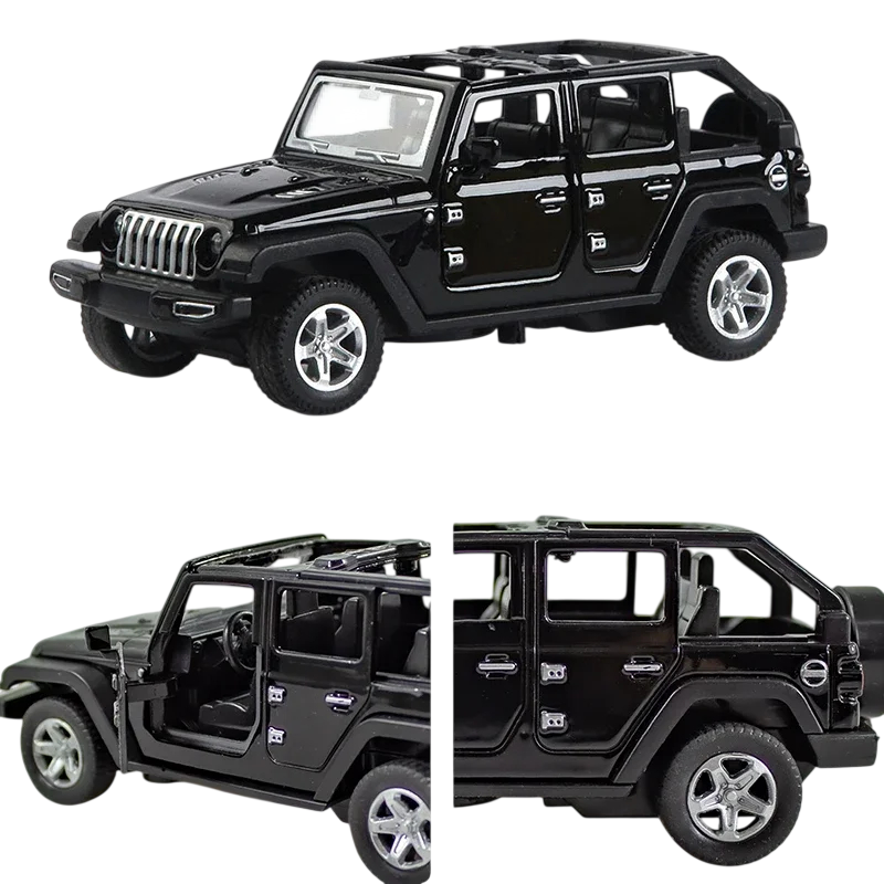 Modello di auto fuoristrada Jeep Wrangler senza tetto 1:36 Auto fuoristrada per bambini Modello aperto giocattolo per ragazzi Auto da collezione