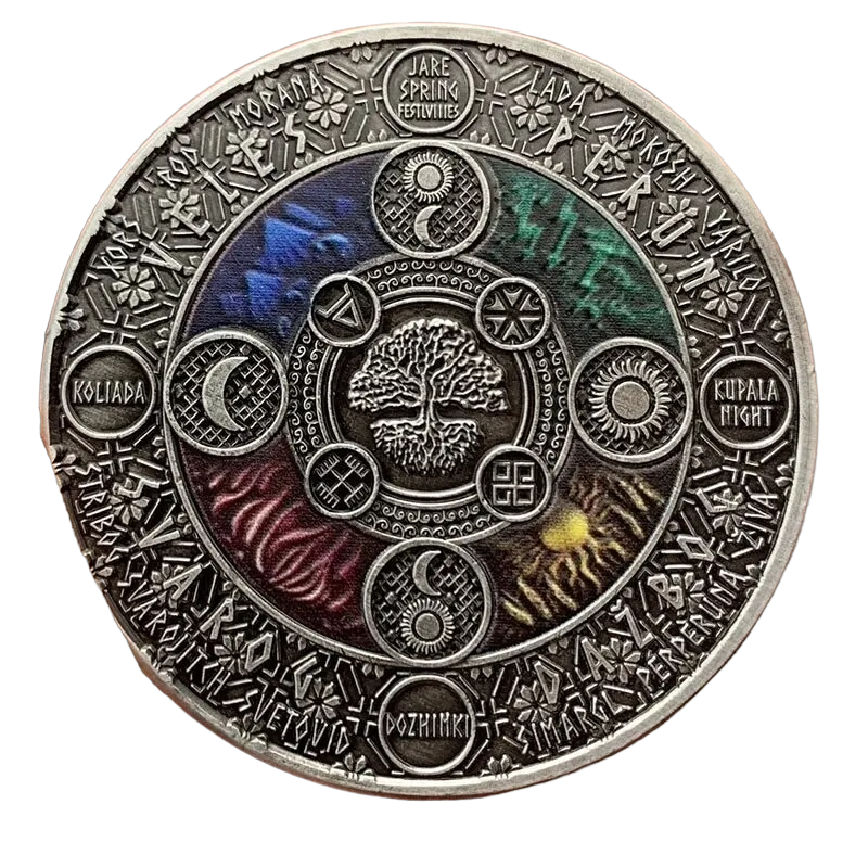 Questa moneta è un perfetto esempio di come la numismatica possa connettere storia, arte e spiritualità. L'eleganza della superficie argentata, arricchita da simboli splendidamente decorati, rappresenta non solo bellezza e sofisticatezza, ma offre anche uno sguardo a significati più profondi che questi simboli portano. Sia come parte di una serie da collezione, sia come pezzo unico, questa moneta rappresenta un legame tra passato, presente e aspetti mistici del nostro mondo. È davvero un oggetto eccezionale, che attrarrà non solo i collezionisti di monete, ma chiunque apprezzi la sua bellezza estetica e la profondità culturale.