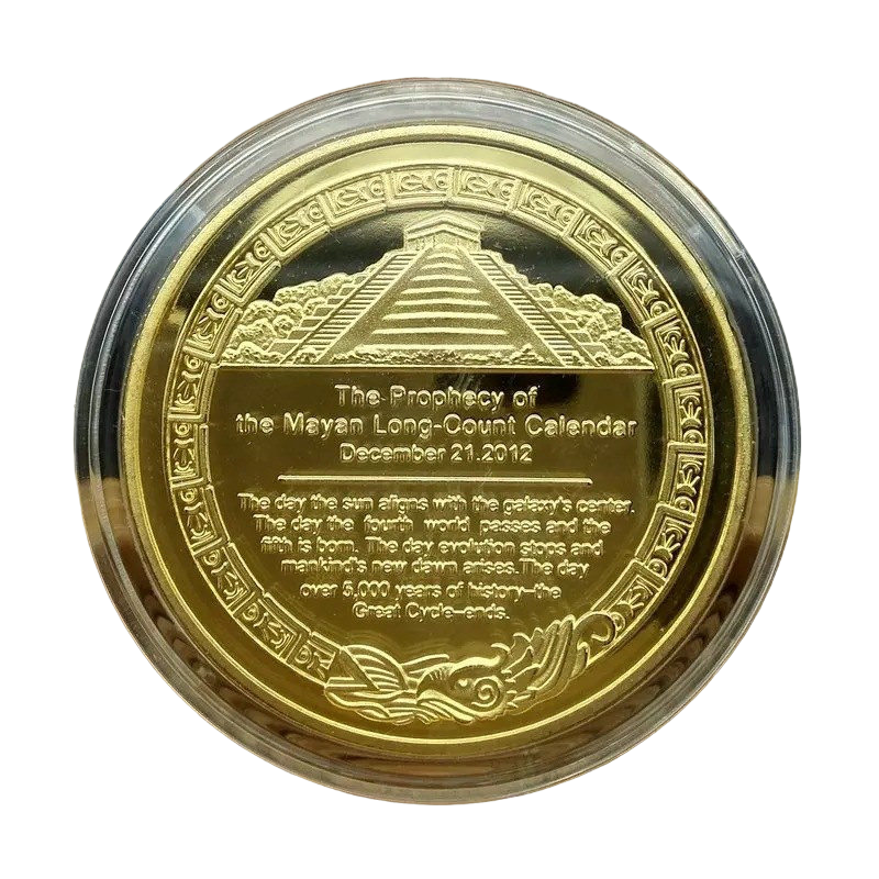 Ottieni un pezzo di storia con questa moneta placcata in oro con il motivo del calendario maya e la piramide, un'aggiunta fantastica per ogni collezionista. Descrizione completa