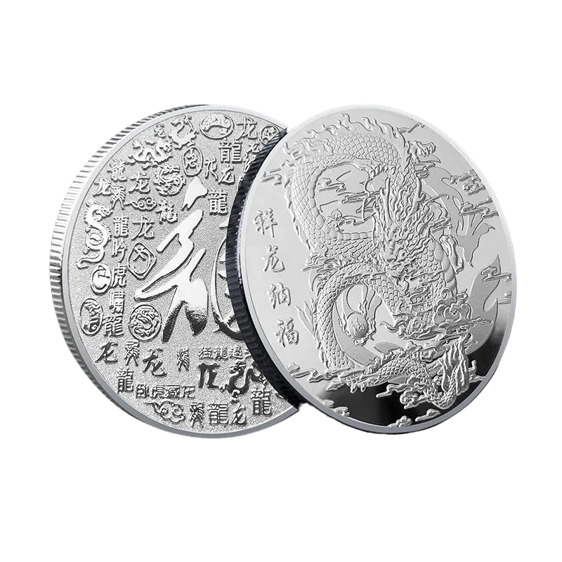 • Caratteristiche: metallica, dorata, argentata, mitologia cinese, drago cinese, da collezione, commemorativa