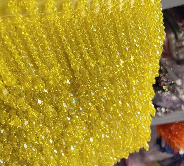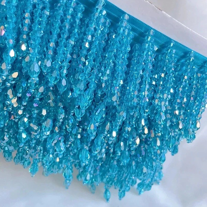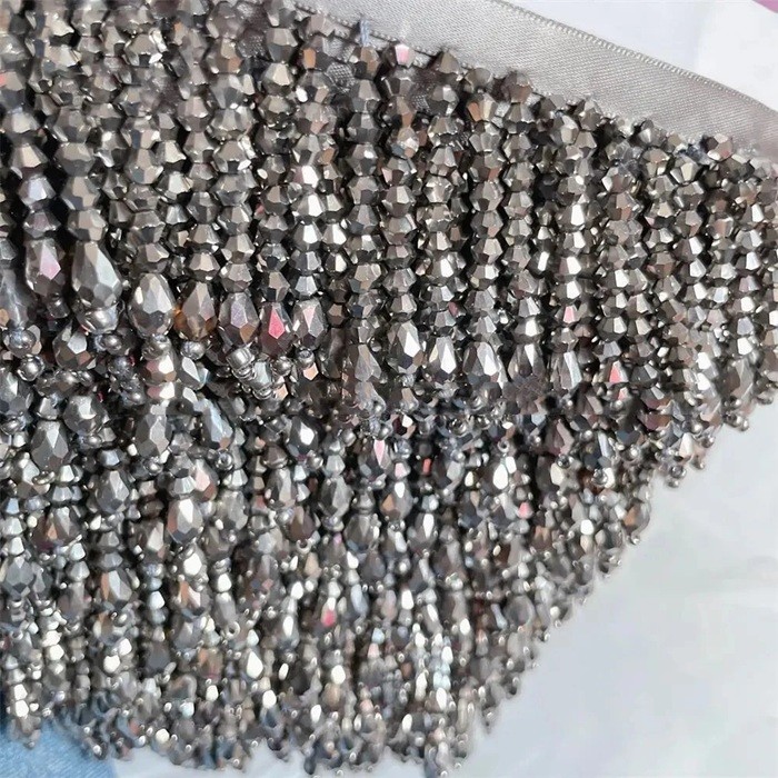 Il nastro con frange di perline è un elemento tessile decorativo di grande impatto, adatto per decorare abbigliamento, costumi e vari tipi di prodotti tessili. Grazie alla combinazione di una fascia rigida e frange di perline appese densamente, può fungere da ornamento distintivo che conferisce ai prodotti un aspetto interessante.