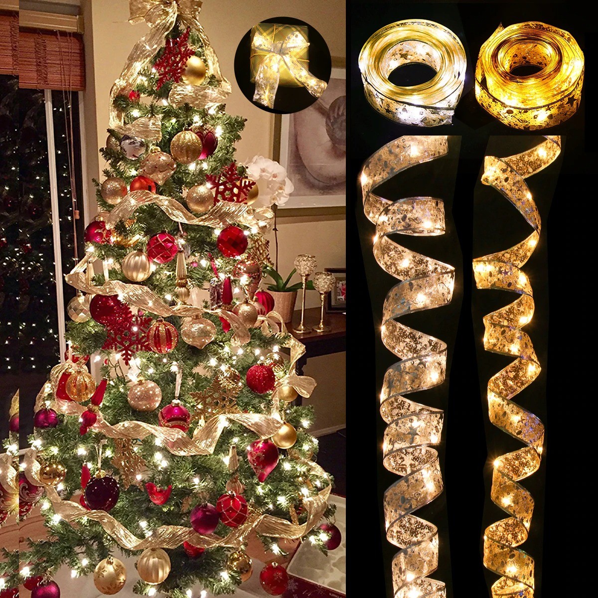 Materiale: rame, rete. Numero di luci LED: 50. Bordo flessibile. Impermeabile. Adatto per incartare regali di Natale o decorare l'albero. Alimentazione: 3 batterie AA (non incluse). Descrizione completa
