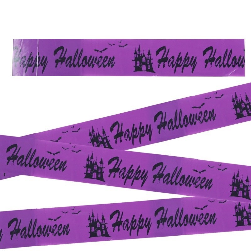 Il nastro viola con la scritta felice Halloween è un'ideale decorazione per il vostro giardino o casa. Con una lunghezza di 6 metri è sufficiente per una grande area. È realizzato in plastica resistente, quindi non si strappa e tiene bene. La larghezza del nastro è di 8 cm, così tutti vedranno la scritta da lontano.