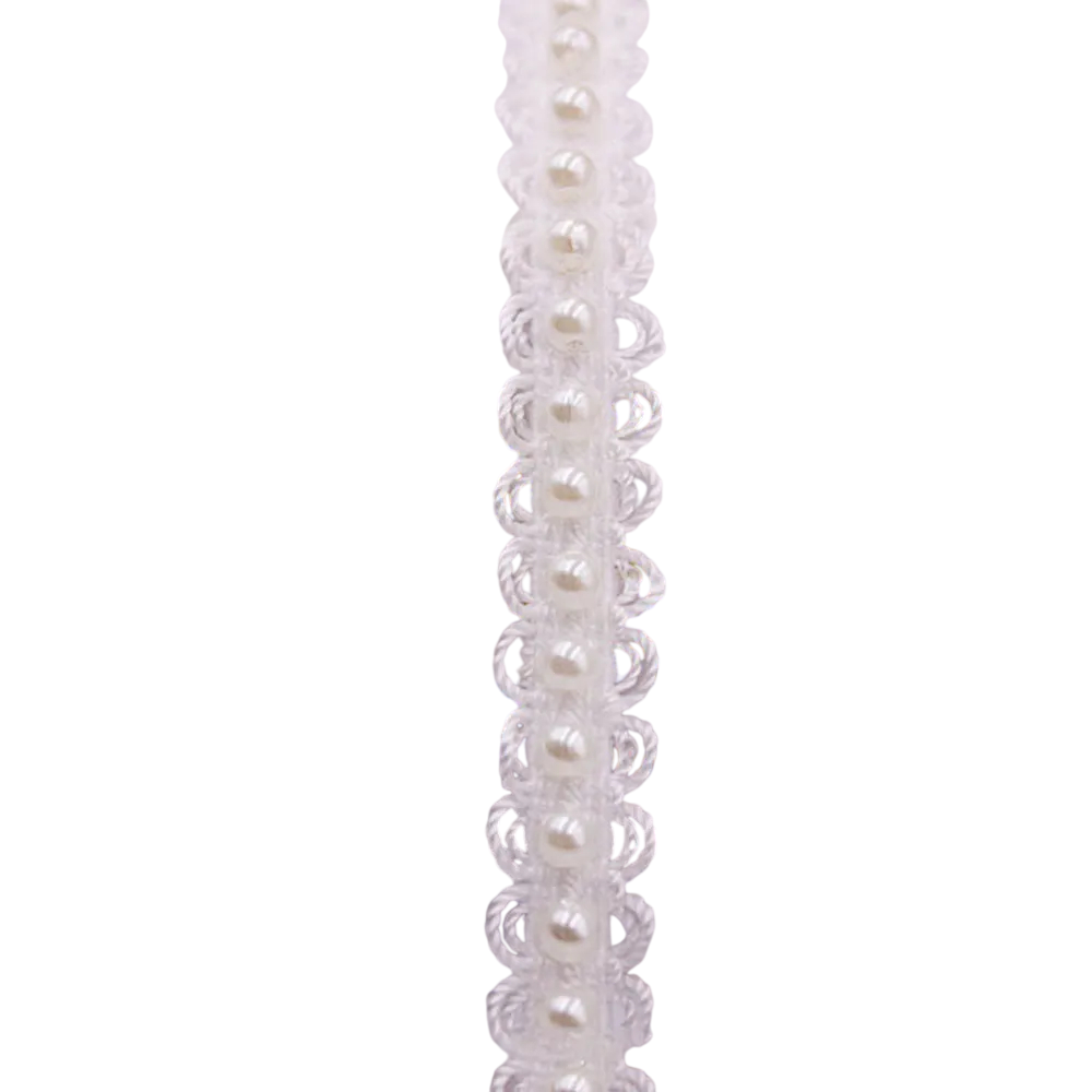 • Nastro decorativo in pizzo perlaceo con imitazione di perle