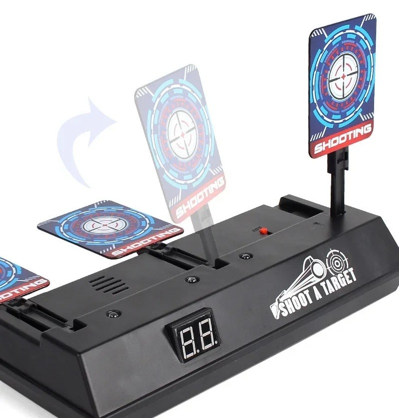 Pagina iniziale Pagina iniziale Tutto per bambini Giocattoli per bambini Armi giocattolo Obiettivo automatico elettronico con 3 bersagli per armi Nerf e altri tipi di armi 32 x 21 x 26 cm Obiettivo da tiro a scatola con effetti luminosi e conteggio dei colpi