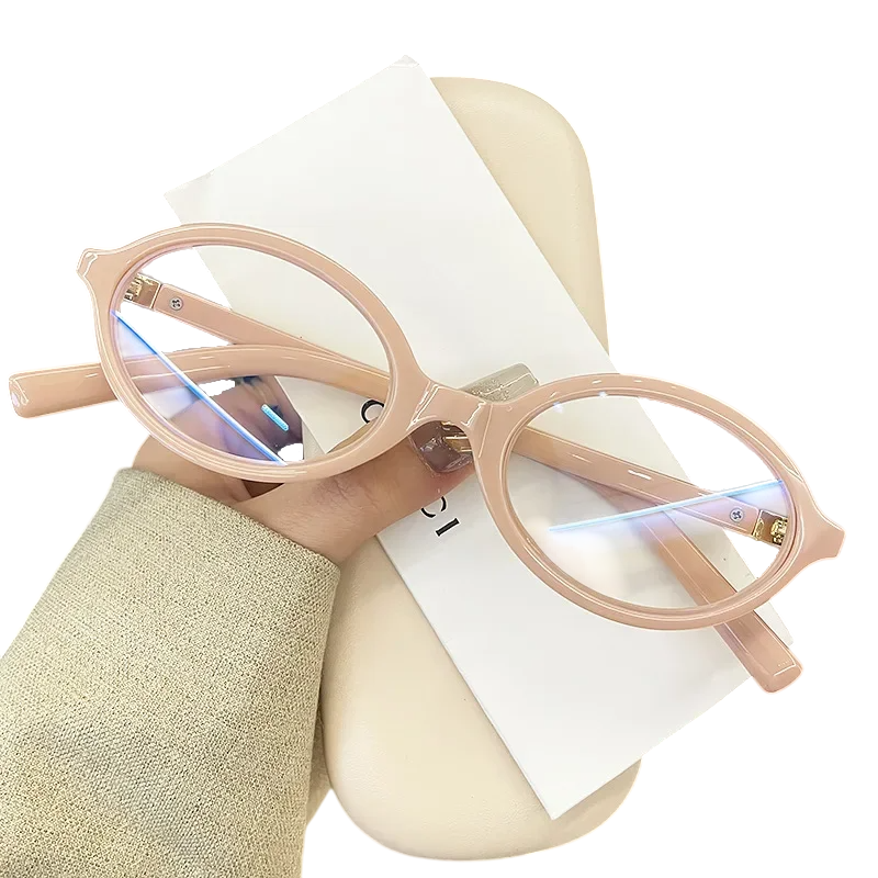 Occhiali ovali eleganti con un tocco retro per la lettura quotidiana, dotati di filtro per luce blu e resistente montatura in PC. Descrizione completa