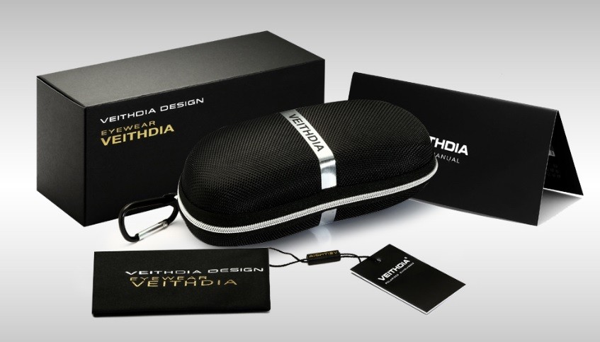 Confezione: scatola al dettaglio, custodia con zip, lenti, scheda del marchio, scheda polarizzante e scheda descrittiva