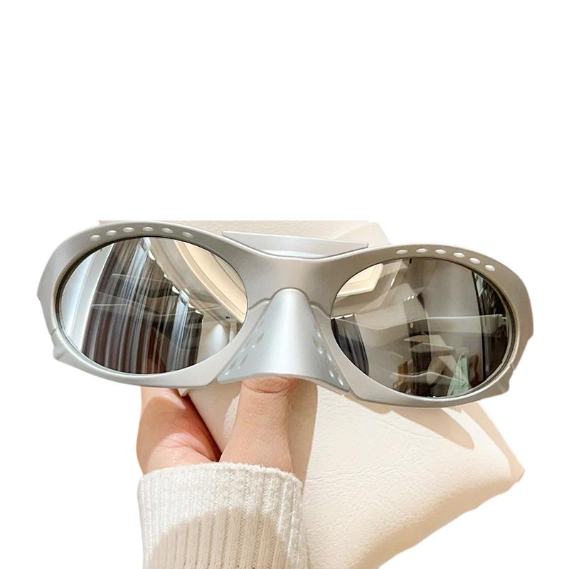 Moderni occhiali da sole sportivi con stilose montature grigio argento progettati per attività fisica e uso quotidiano. Grazie al filtro UV400 offrono una protezione affidabile degli occhi dai dannosi raggi ultravioletti. Le lenti specchiate aiutano a ridurre il riverbero e aumentano il comfort visivo durante la guida, il ciclismo e altre attività all'aperto. La forma sportiva si adatta bene al viso e protegge gli occhi dal vento, dalla polvere e dalle piccole impurità.