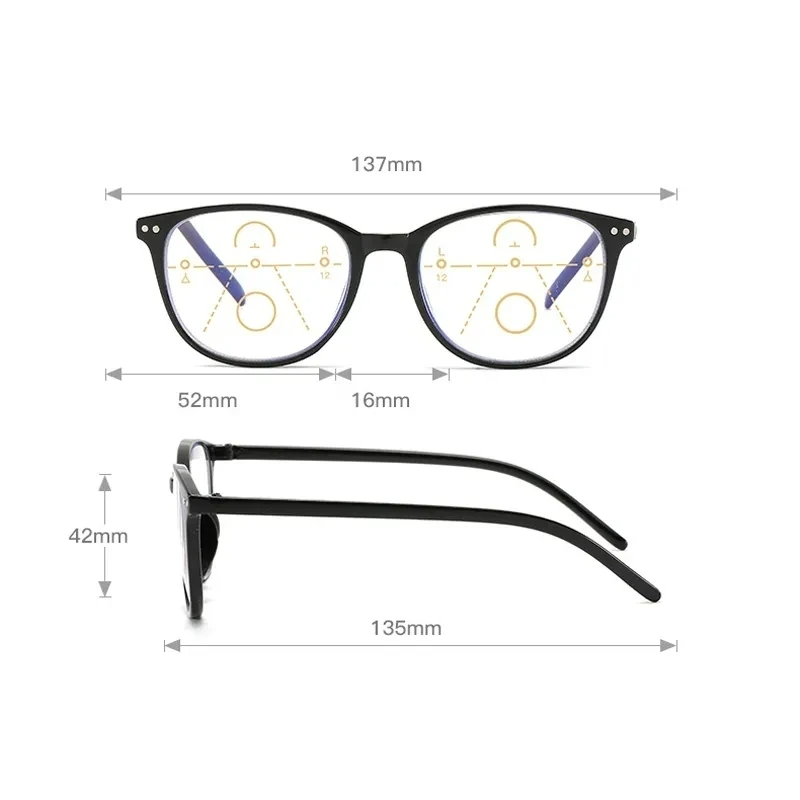 Gli occhiali multifocali con diottria +3,50 sono la scelta ideale per le donne che cercano una soluzione pratica e allo stesso tempo elegante per la lettura quotidiana e il lavoro a distanza. Questi occhiali da lettura con più focali consentono una messa a fuoco fluida a diverse distanze senza la necessità di cambiare occhiali. La montatura in plastica garantisce leggerezza e comfort anche durante un utilizzo prolungato. Il design moderno da donna si adatta sia all'ufficio che all'uso domestico. Gli occhiali sono destinati esclusivamente a donne che apprezzano la combinazione di estetica e funzionalità.