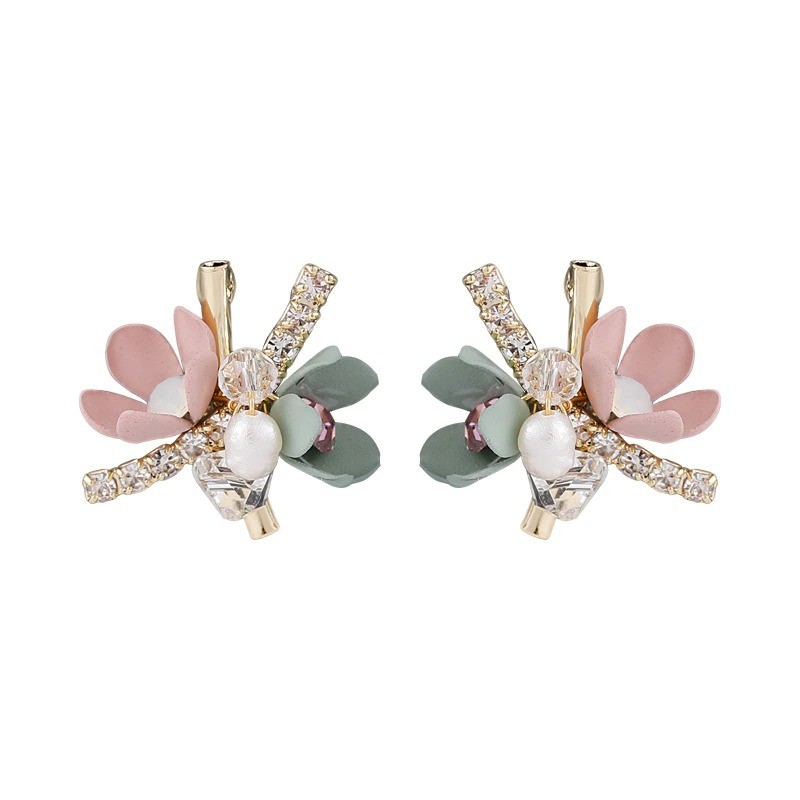 Orecchini a bottone da donna a forma di fiore con zirconi