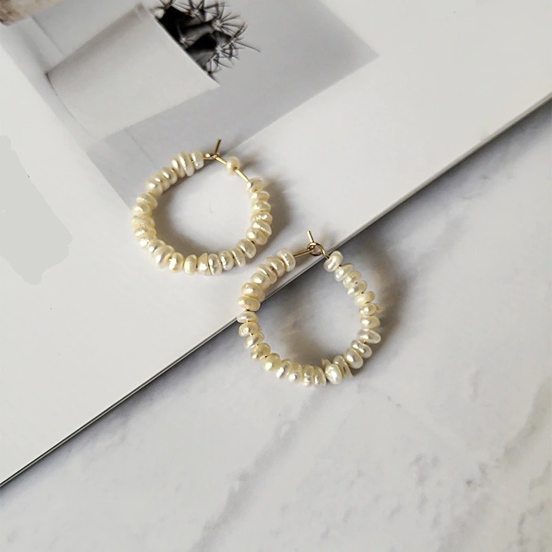 Orecchini a cerchio da donna con perle