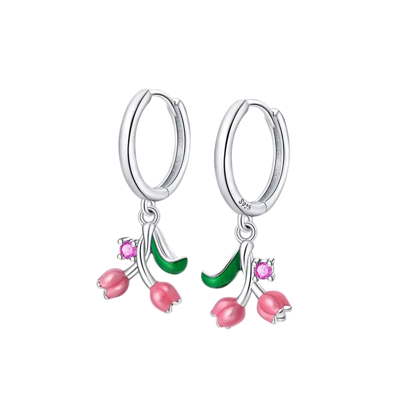 Orecchini a forma di tulipano in argento sterling 925 per donne Gioielli floreali simbolo di amore, eleganza e perfezione motivo primaverile fresco