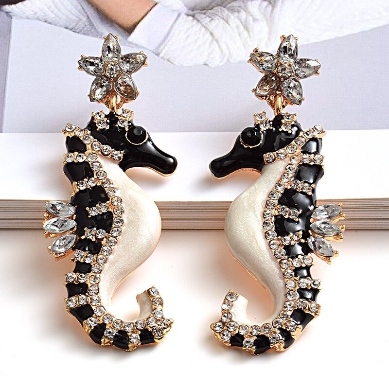 Orecchini a pendente da donna a forma di cavalluccio marino