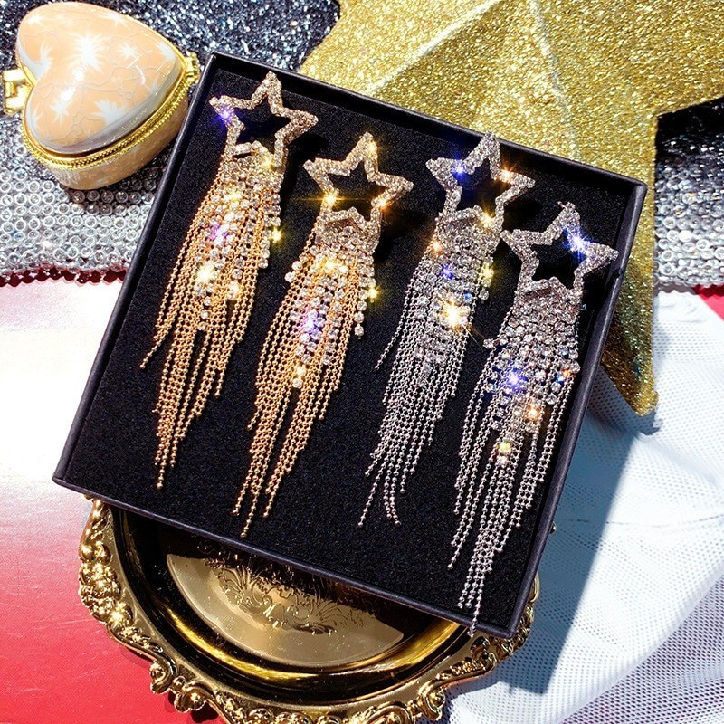 Orecchini a pendente da donna a stella con zirconi