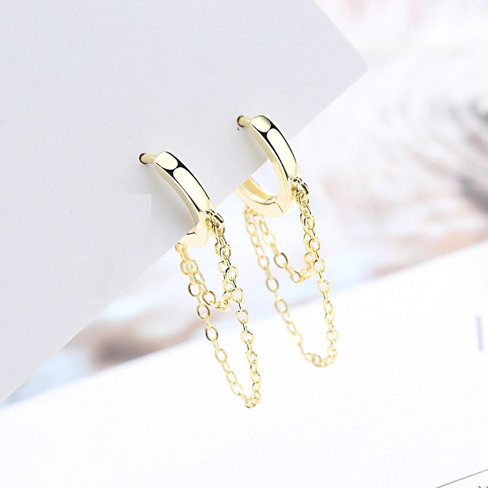 Orecchini circolari da donna con catena