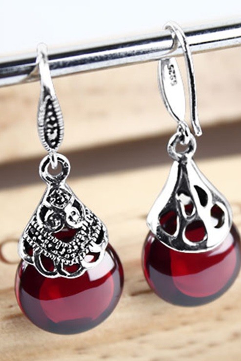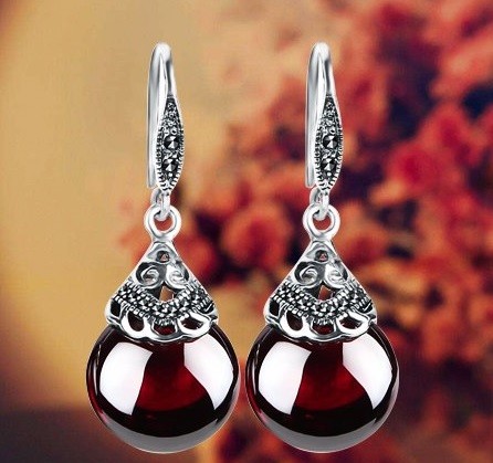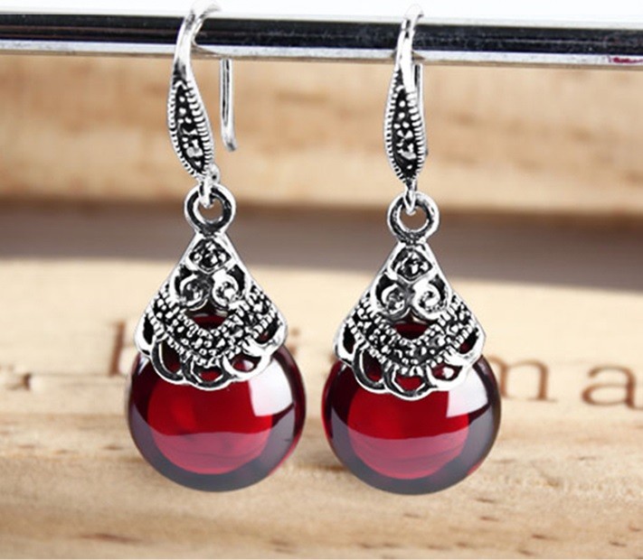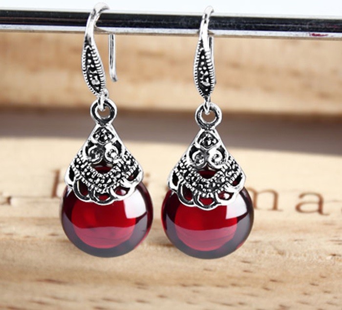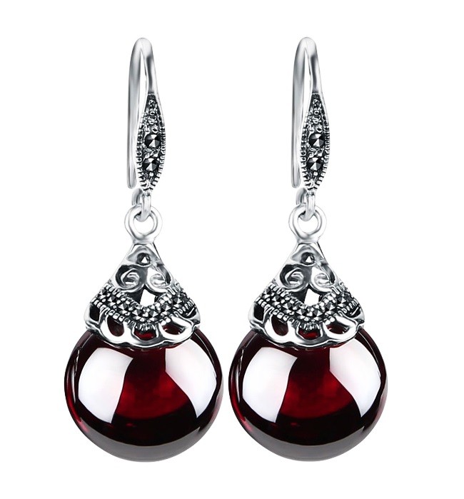 Orecchini da donna eleganti in un bellissimo design decorati con granato rosso saranno un ornamento per ogni donna.
