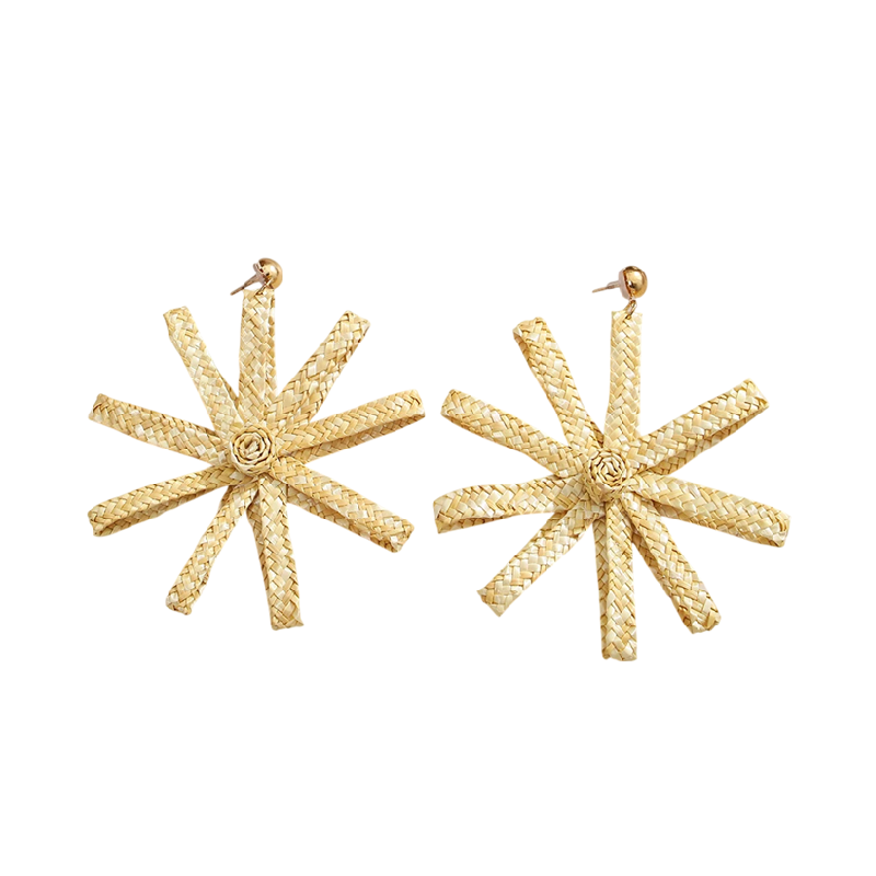 Orecchini pendenti da donna design a stella intrecciato legno naturale beige orecchini leggeri per uso quotidiano