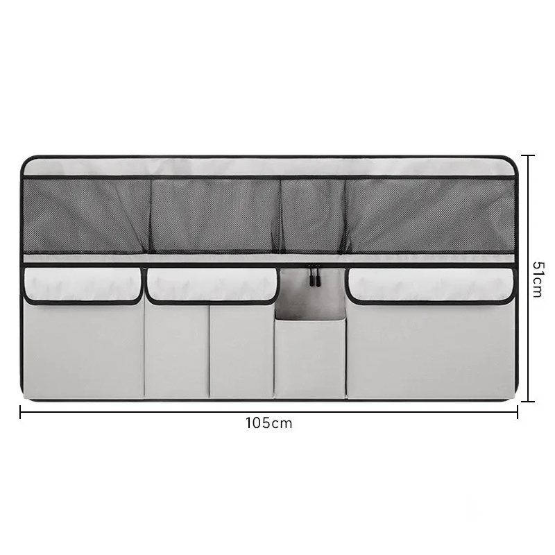 Organizzatore per bagagliaio auto 105 x 51 cm Sospeso sui sedili posteriori Tessuto Oxford Sistema di stoccaggio pratico Tasche a rete e chiudibili
