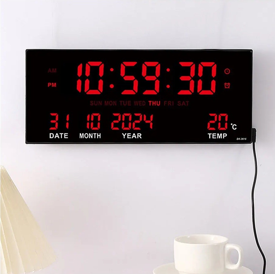 Orologi da parete digitali con sveglia, termometro e calendario 150 x 360 x 30 mm