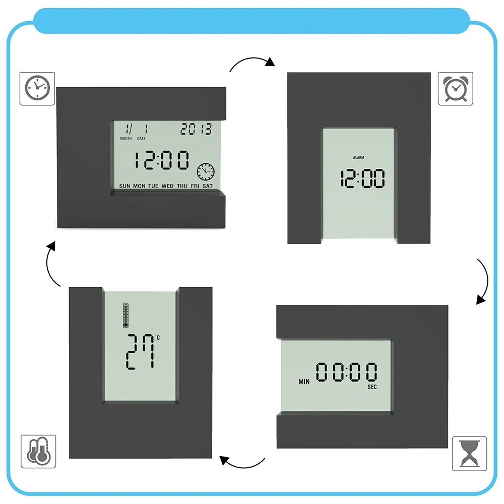 Funzioni: termometro, calendario, sveglia, rotazione automatica del display, timer