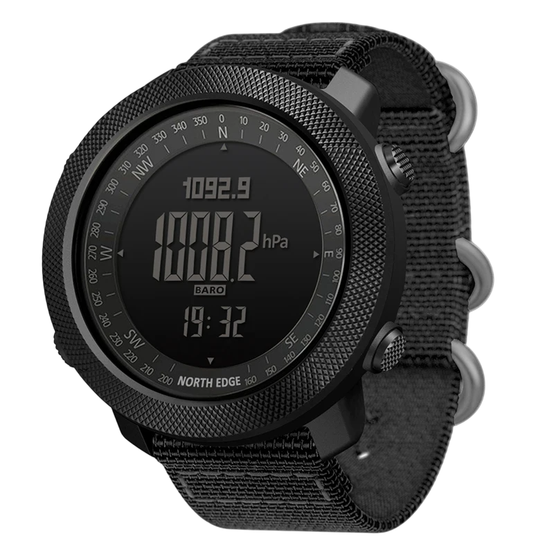 Orologi sportivi digitali da uomo 50 mm Impermeabili Corsa Nuoto Bussola Barometro Altimetro Contapassi Bracciale in nylon Sveglia