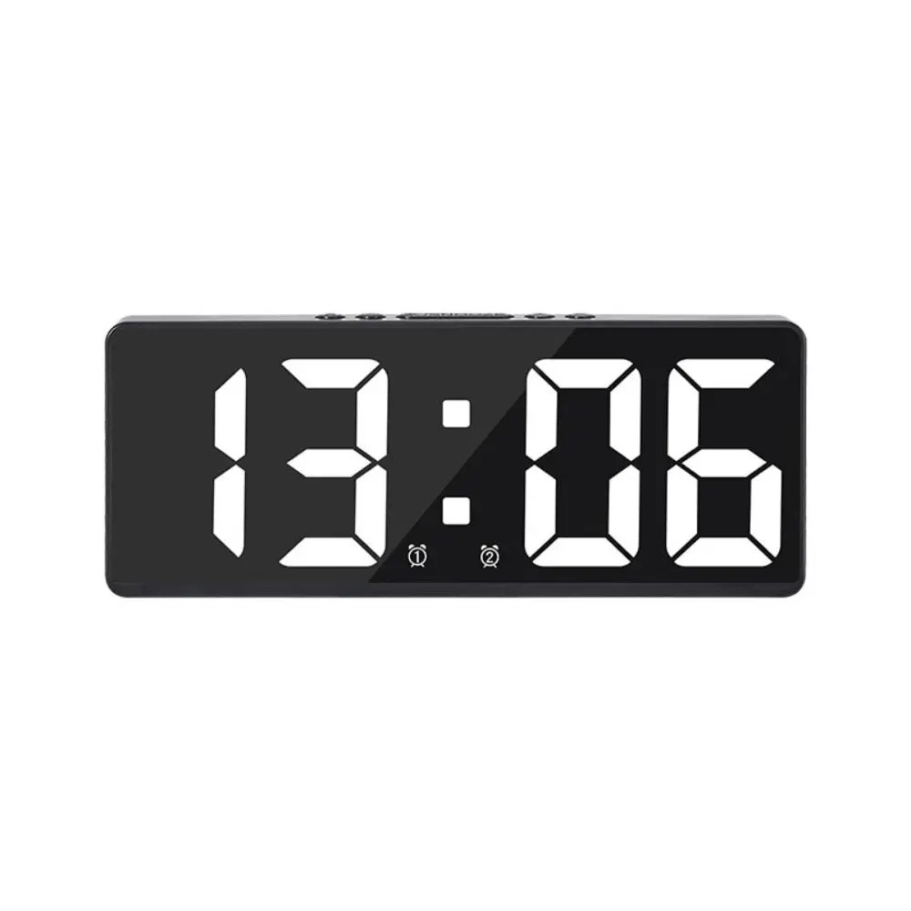 Elegante orologio digitale con display LED a specchio e funzioni pratiche è la scelta ideale per una camera da letto moderna o un ufficio. Grazie al controllo vocale, puoi attivare il display semplicemente applaudendo o bussando sul tavolo. Il dispositivo consente di passare tra il formato 12/24 ore e di scegliere tra °C e °F. Ha 5 livelli di luminosità e una funzione di attenuazione automatica dalle 22:00 alle 6:00. È disponibile anche una modalità non disturbare, che disattiva sia il display che il controllo vocale, con la possibilità di attivazione manuale.