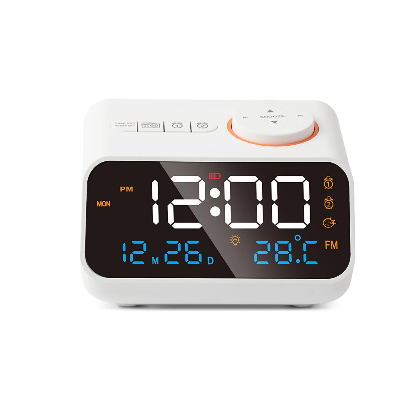 Orologio sveglia LED multifunzionale con radio FM 11,3 x 8,6 x 7,15 cm Temperatura Umidità Alimentazione USB 2 sveglie Sveglia vocale Luminosità regolabile