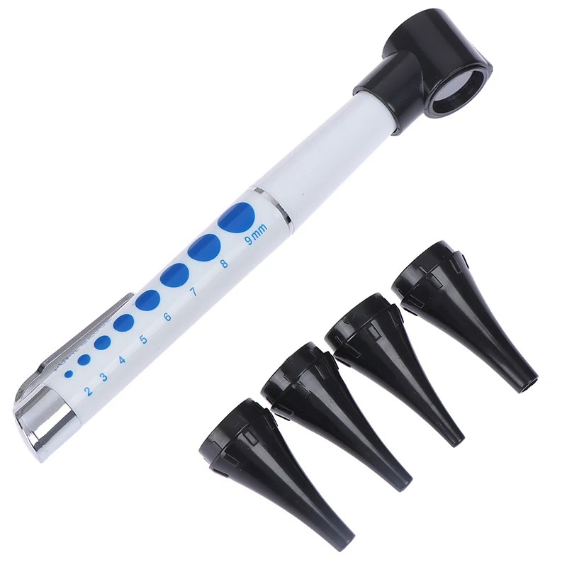 Otoscopio compatto con luce integrata e quattro accessori consente un'ispezione sicura e dettagliata delle orecchie a casa e in ambiente medico. Descrizione completa