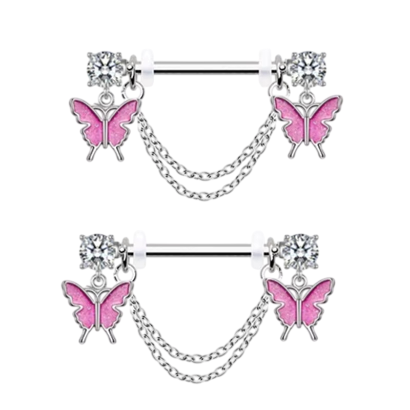 Paar di gioielli per capezzoli lucidi con motivo di farfalle in dimensione 1,6 mm porta delicatezza, stile femminile e un elegante accessorio corporeo. Descrizione completa