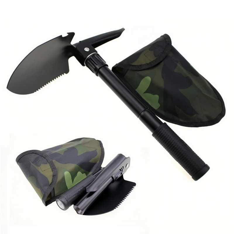 Pala e zappa da campeggio pieghevole multifunzionale 41,5 cm Piegata 12 x 12,5 cm Con custodia Strumento portatile per sopravvivenza Outdoor escursionismo