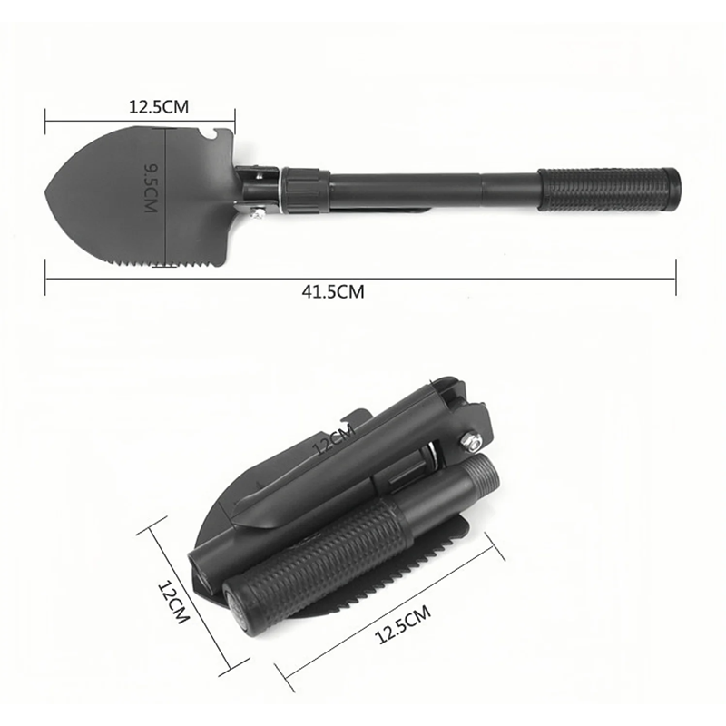 Questa pala e zappa pieghevole multifunzionale è il compagno ideale per tutti gli amanti delle attività all'aperto, del campeggio, dell'escursionismo o della sopravvivenza nella natura. Grazie alle sue dimensioni compatte, può essere facilmente riposta nello zaino o in auto, senza occupare troppo spazio. Da aperta raggiunge una lunghezza di 41,5 cm e da chiusa misura solo 12 x 12,5 cm, rendendola uno strumento estremamente pratico per i viaggi. Può essere utilizzata non solo per allestire un campo, ma anche per piccoli lavori in giardino, nel bosco o durante le escursioni.