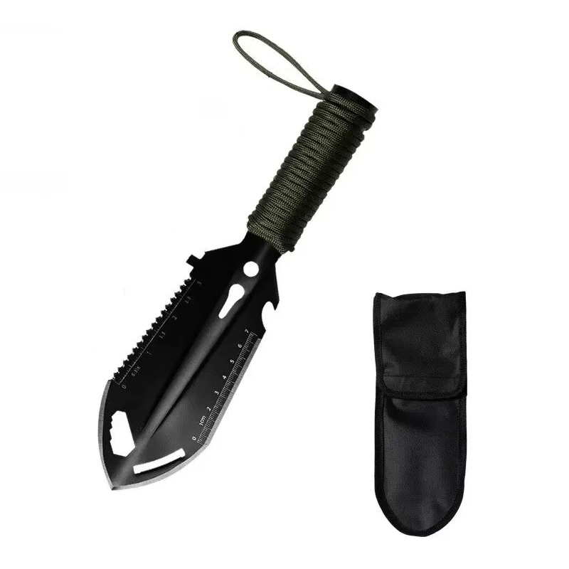 Pala survival multifunzionale 6in1 in acciaio per utensili Coltello Sega Punta di lancia Chiave a brugola Righello Estirpatore di chiodi Strumento tattico per la natura