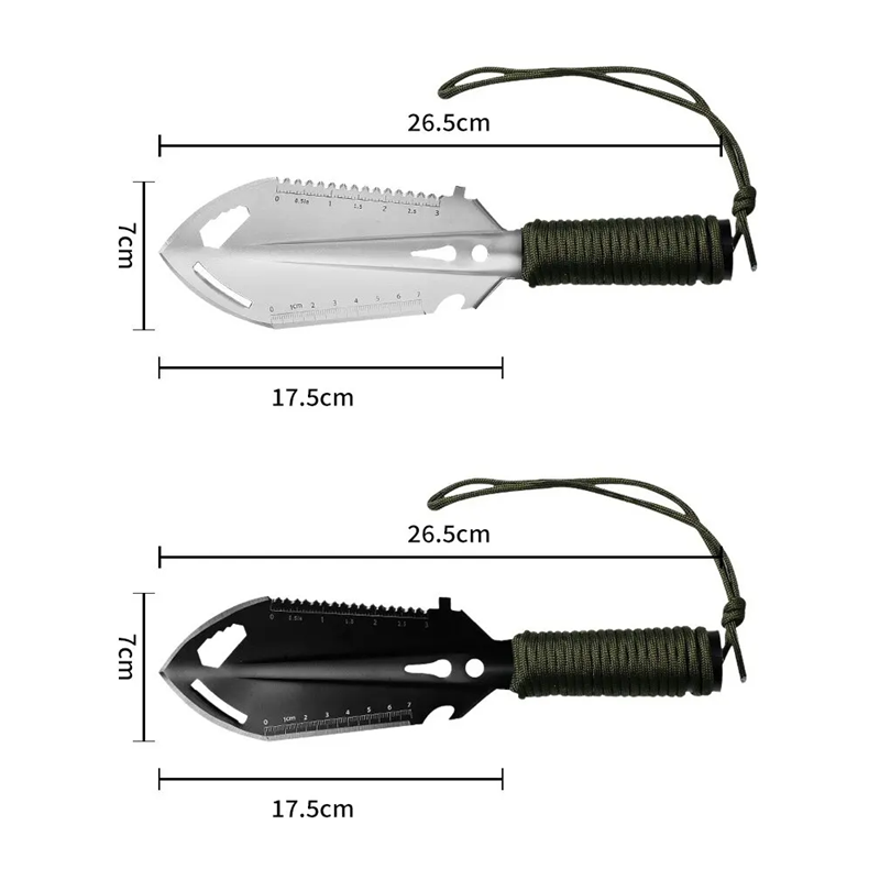 Questa pala multifunzionale 6in1 resistente è un pratico alleato per tutti gli appassionati di outdoor, i fai-da-te e gli amanti della sopravvivenza in natura. Grazie alla sua robusta costruzione in acciaio per utensili, combina la funzione di pala, coltello, sega, punta di lancia, chiave a brugola e estirpatore di chiodi in un unico strumento compatto. Ideale per il campeggio, l'auto, il laboratorio o l'escursionismo. Può anche essere uno strumento utile in situazioni di emergenza, quando hai bisogno di più di semplici attrezzi.