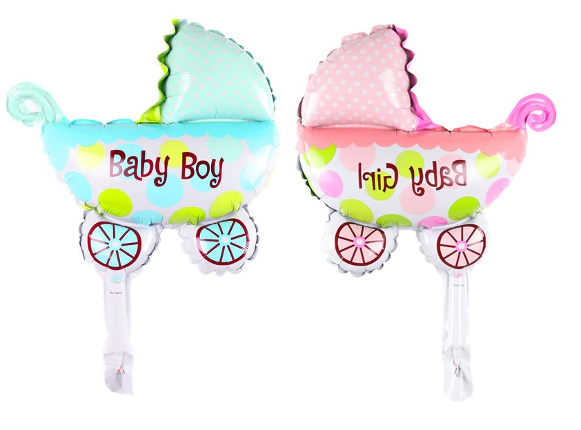 Festeggia la nascita di un bambino con questi palloncini a forma di carrozzina con la scritta Baby Girl e Baby Boy.