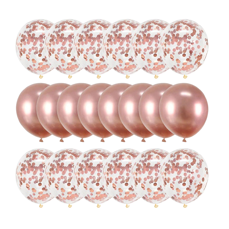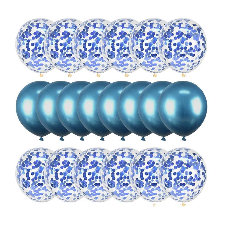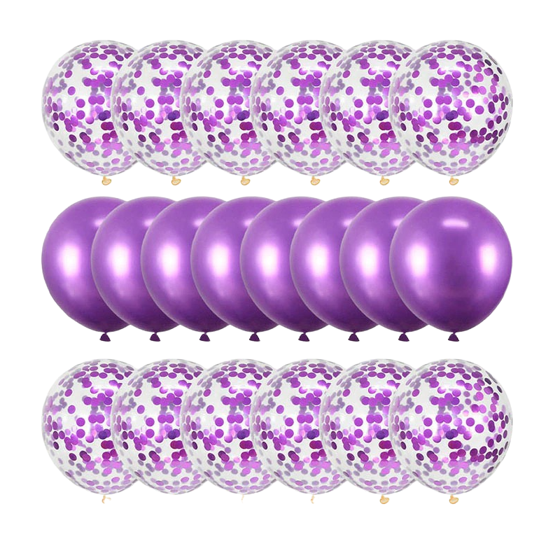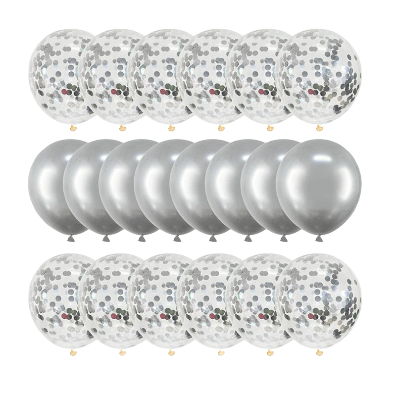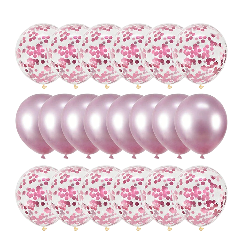 12 palloncini con coriandoli. 8 palloncini in lattice. Adatti per feste di compleanno o matrimoni. Descrizione completa