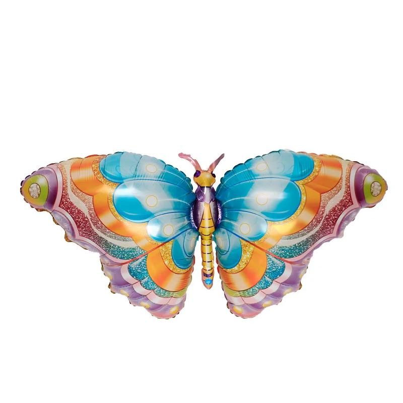 Grande palloncino gonfiabile in foil a forma di farfalla, adatto per essere riempito di elio o aria, ideale per compleanni e feste. Descrizione completa