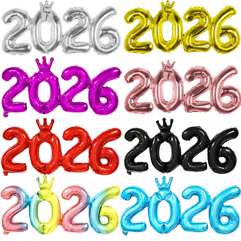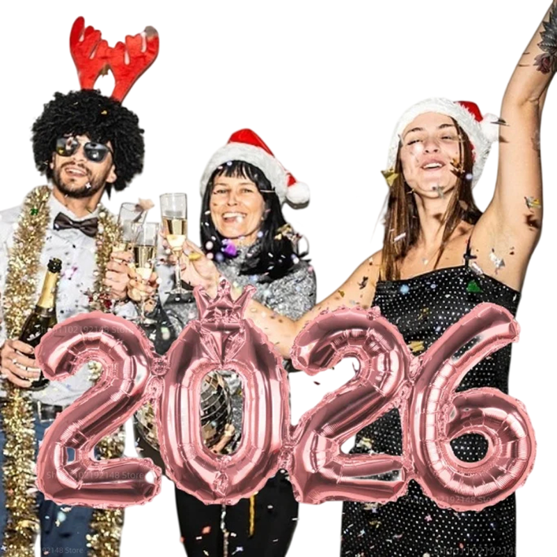 Grandi palloni in alluminio con i numeri 2026 per decorazioni di Capodanno, feste di Capodanno, Natale o lauree. Eleganti e facili da gonfiare. Descrizione completa