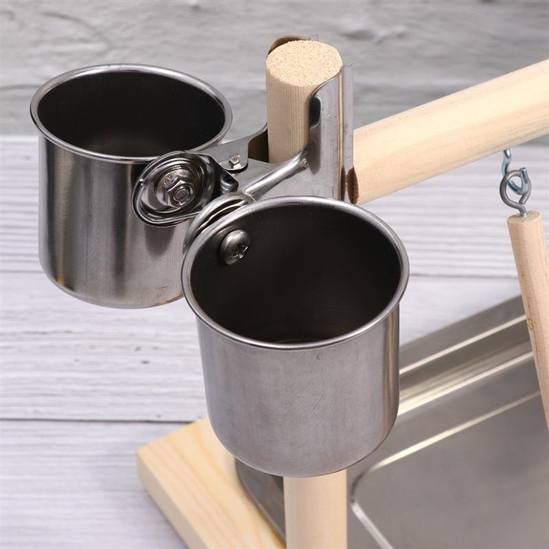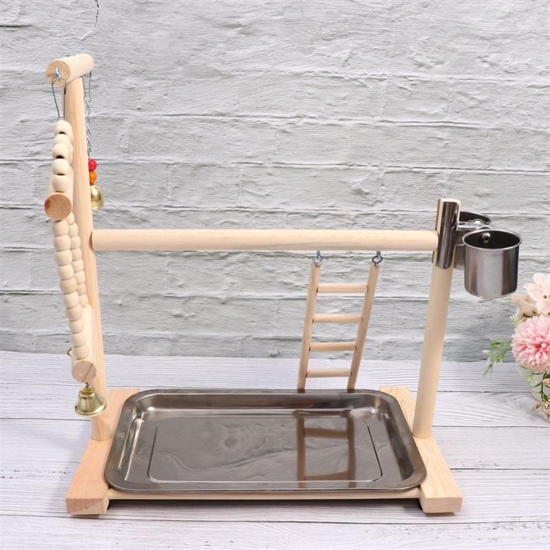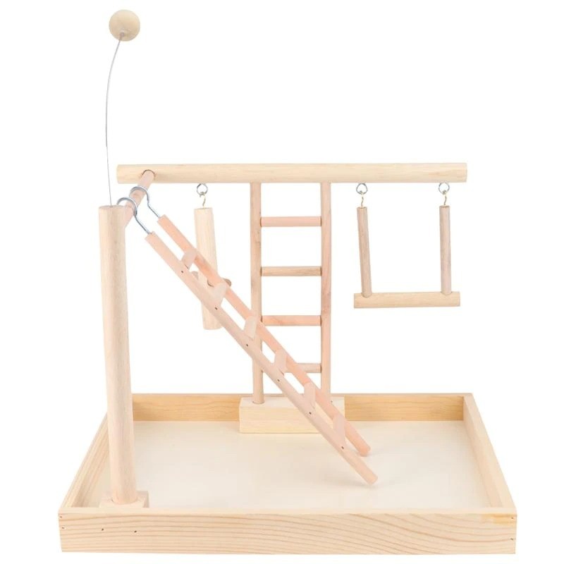 Palo di legno con giocattoli per uccelli