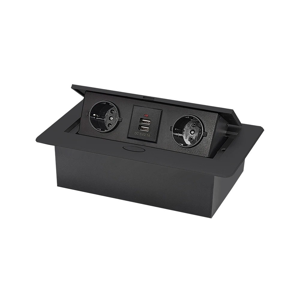 Il pannello a scomparsa rappresenta una soluzione pratica per i moderni piani di lavoro, dove è necessario combinare disponibilità di alimentazione e design pulito. Il pannello è incassato nella superficie e si estrae facilmente premendo un pulsante. Offre una combinazione di prese elettriche classiche e porte USB, consentendo di collegare vari dispositivi senza la necessità di ulteriori adattatori. Grazie alle dimensioni compatte, è adatto per cucine, uffici e scrivanie.