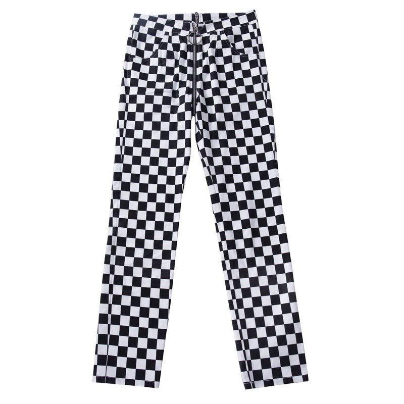 Pantaloni a quadri bianchi e neri da donna