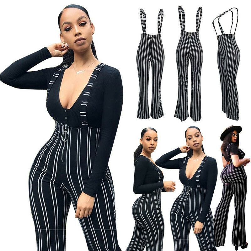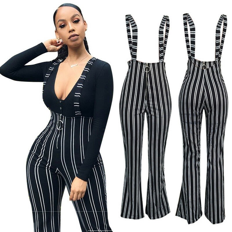 Pantaloni a righe da donna con bretelle