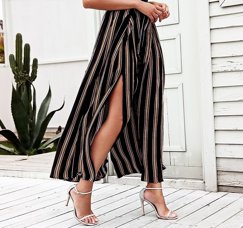 Pantaloni a righe da donna con spacco