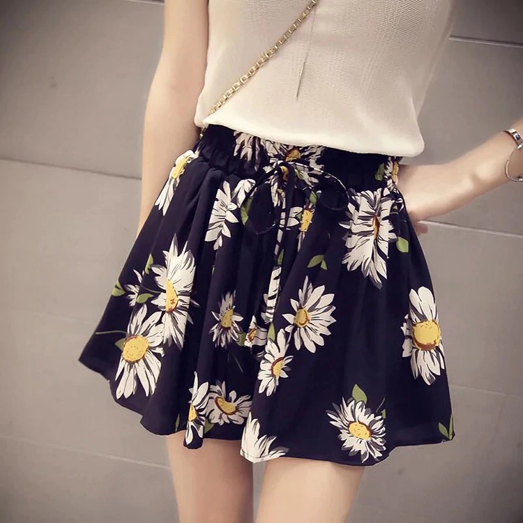 Indossa questi eleganti pantaloni corti con stampa di fiori di camomilla per l'estate.