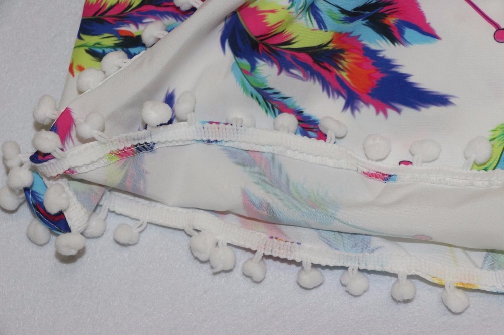 Sii pronta per le giornate estive con questi pantaloni corti con piume, che brillano magnificamente al sole.