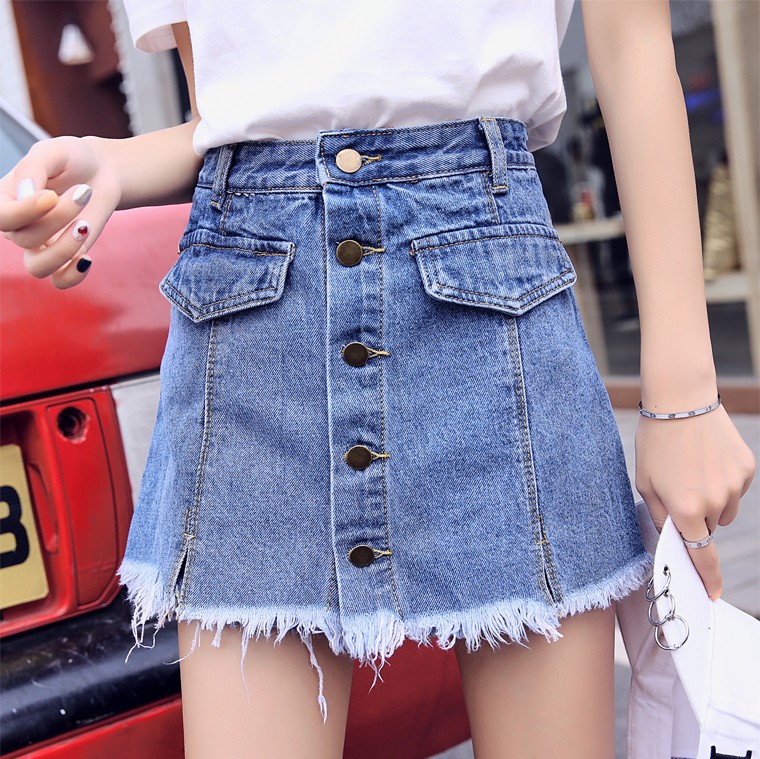 I pantaloni corti in denim con bottoni e tasche piaceranno a ogni donna.